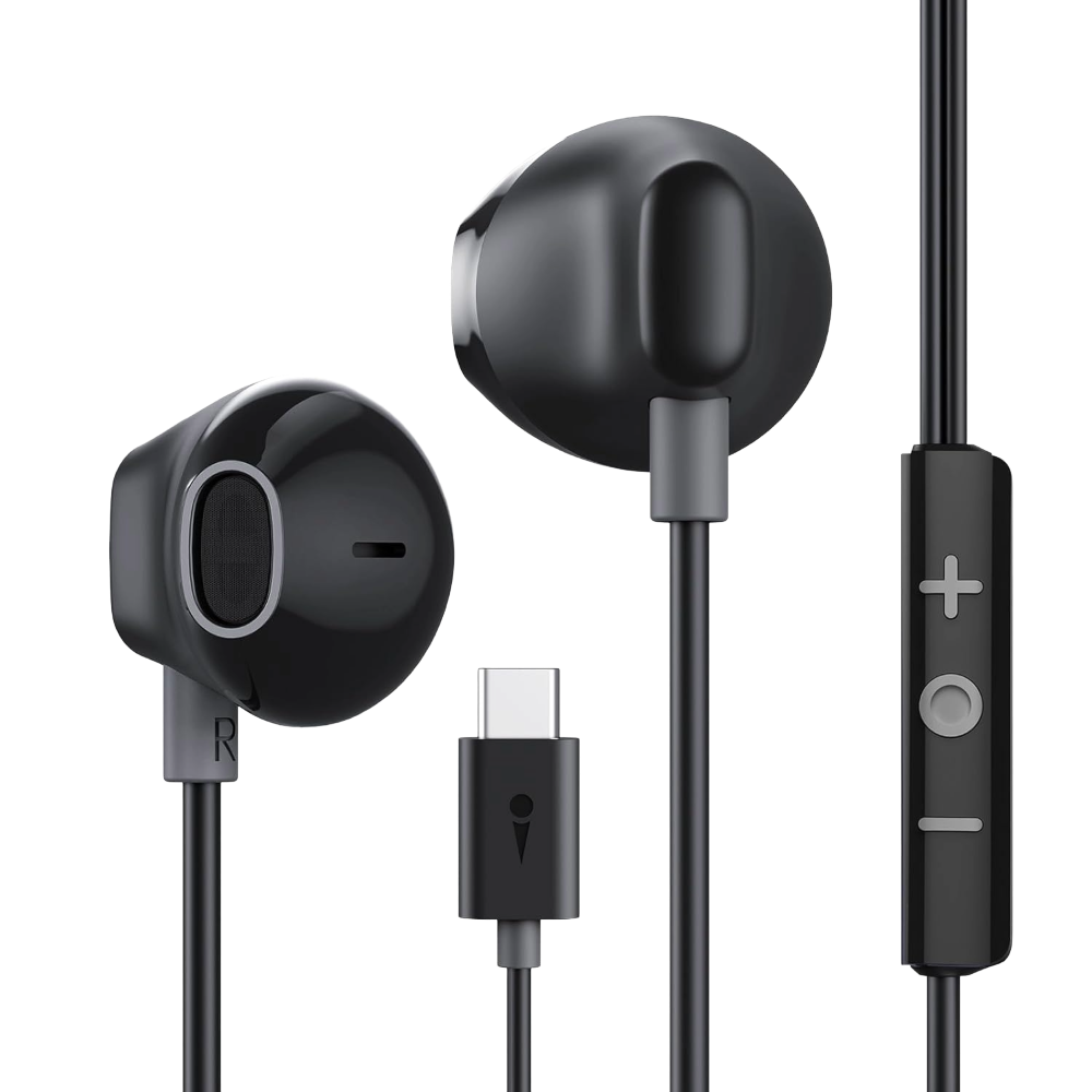 Oraimo 14.2mm Black In‑Ear Wired Earphone, OEP‑605N is a Type-C wired earphone with large 14.2 mm drivers for deep bass and crisp sound, a built-in mic with 3-button control for calls and music, and a comfortable half in-ear fit designed for everyday listening.