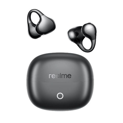 realme Buds Clip Open-Ear Wireless Earbuds offer a unique open-ear design with 11 mm dual magnet drivers for comfortable listening without blocking ambient sound. They deliver 3D spatial audio, long battery life of up to 36 hours, AI-powered ENC for clearer calls, and IP55 water-and-dust resistance with low-latency performance for gaming and videos.